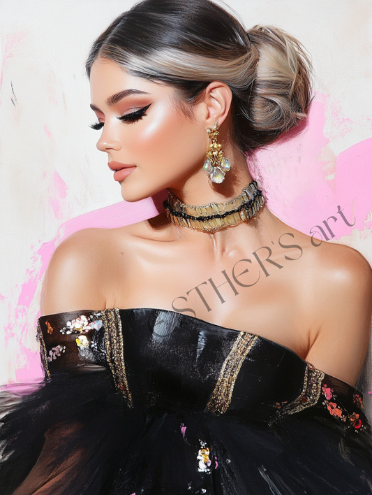Gold & Black Rhinestone Crystal Fan Tassel Earrings