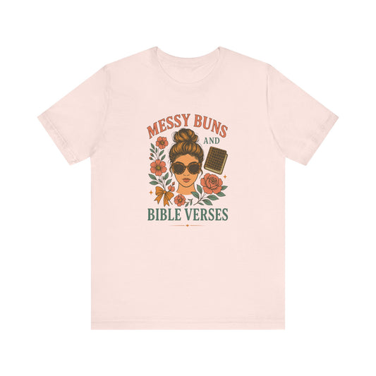 Messy Buns & Bible Verses Tee | Christian Apparel, Cute Graphic Shirt, Faith-Inspired Clothing, Inspirational Gift, Summer Wardrobe
