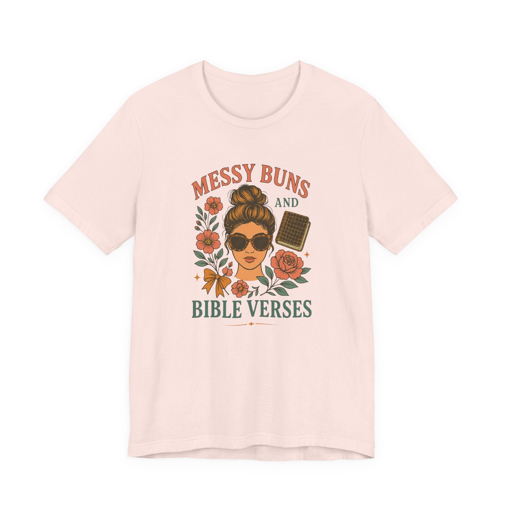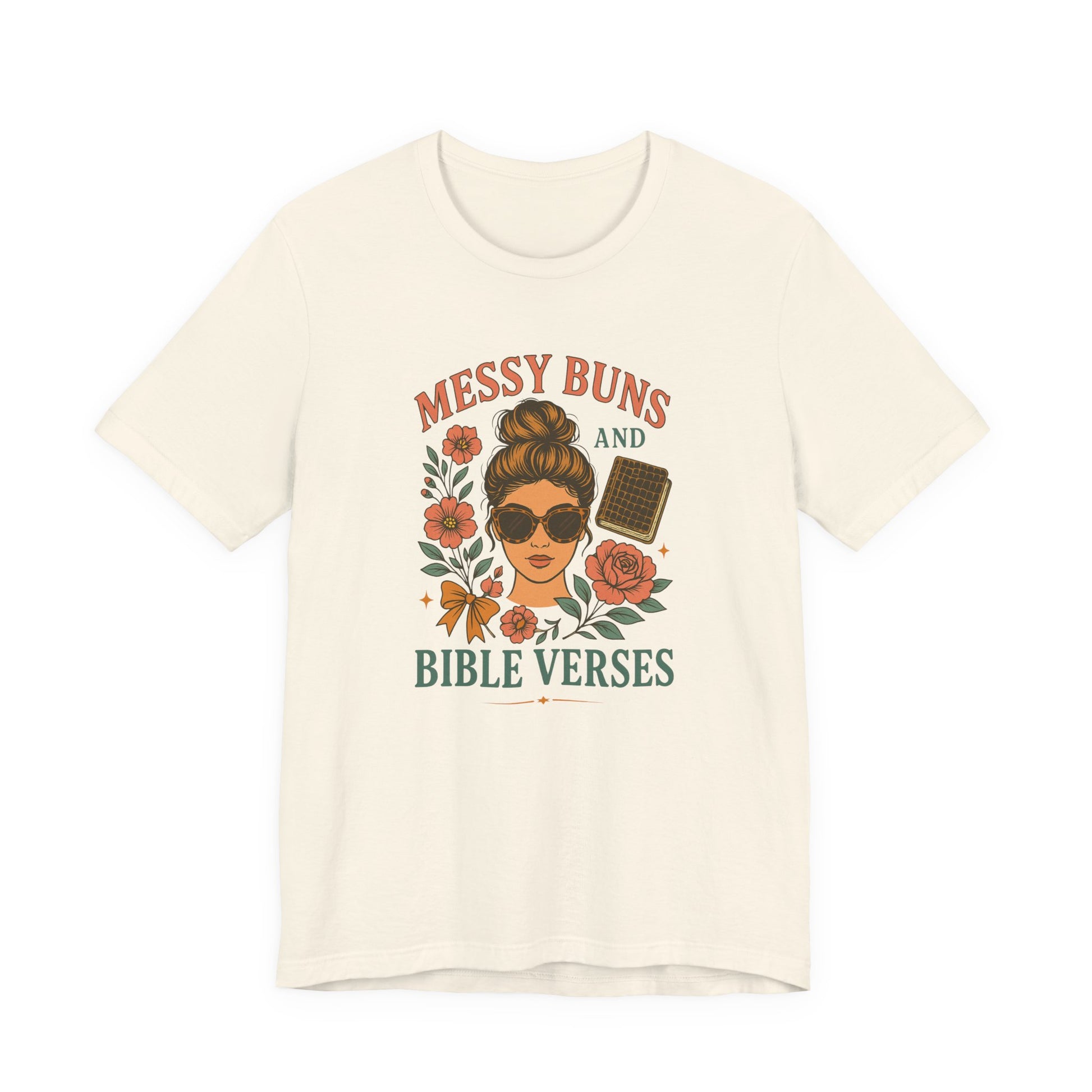 Messy Buns & Bible Verses Tee | Christian Apparel, Cute Graphic Shirt, Faith-Inspired Clothing, Inspirational Gift, Summer Wardrobe